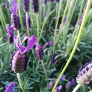 La Lavandula stoechas, comunemente nota come lavanda spagnola, è una pianta appartenente alla famiglia delle Lamiaceae. Questa specie è particolarmente riconoscibile per le sue spighe fiorali che terminano con brattee colorate, spesso di un viola acceso. A differenza di altre varietà di lavanda, i suoi fiori sono più compatti e hanno una forma distintiva che ricorda una farfalla. Originaria delle regioni mediterranee, la Lavandula stoechas è particolarmente resistente ai climi caldi e secchi, rendendola ideale per la coltivazione in giardini con condizioni simili.